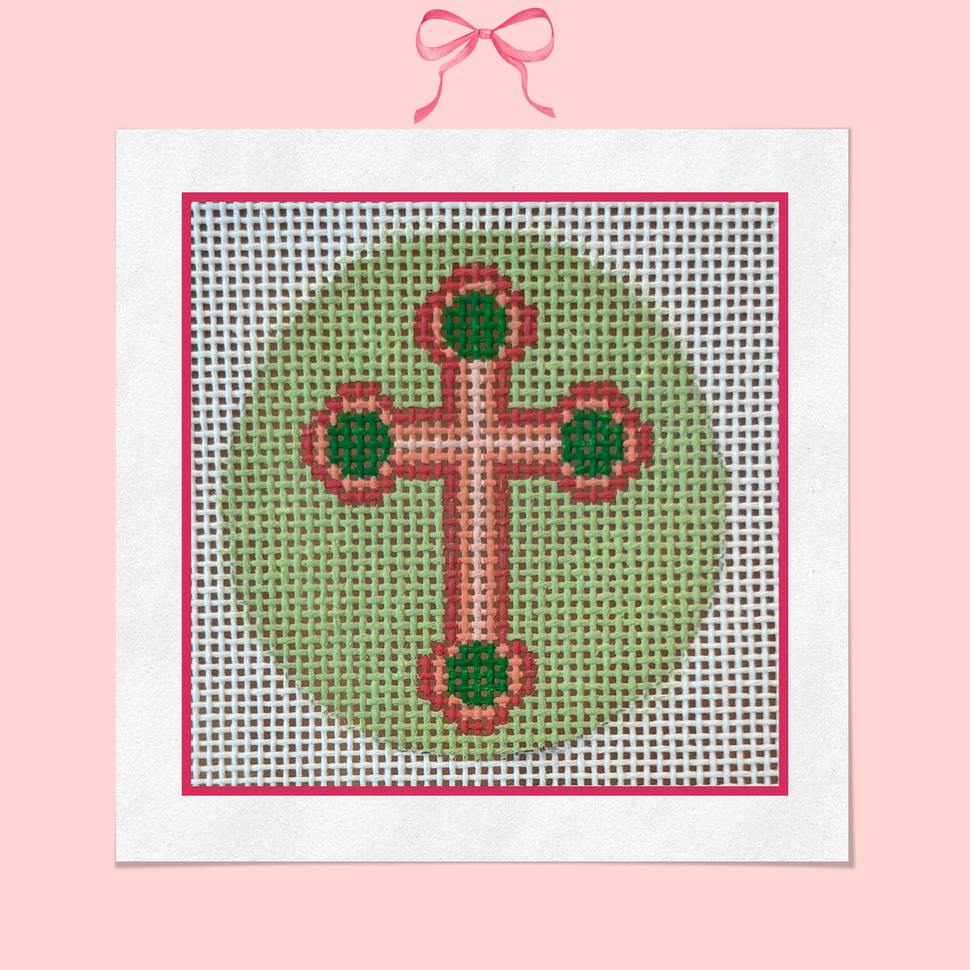 Pink and Green Cross on 18 Mesh